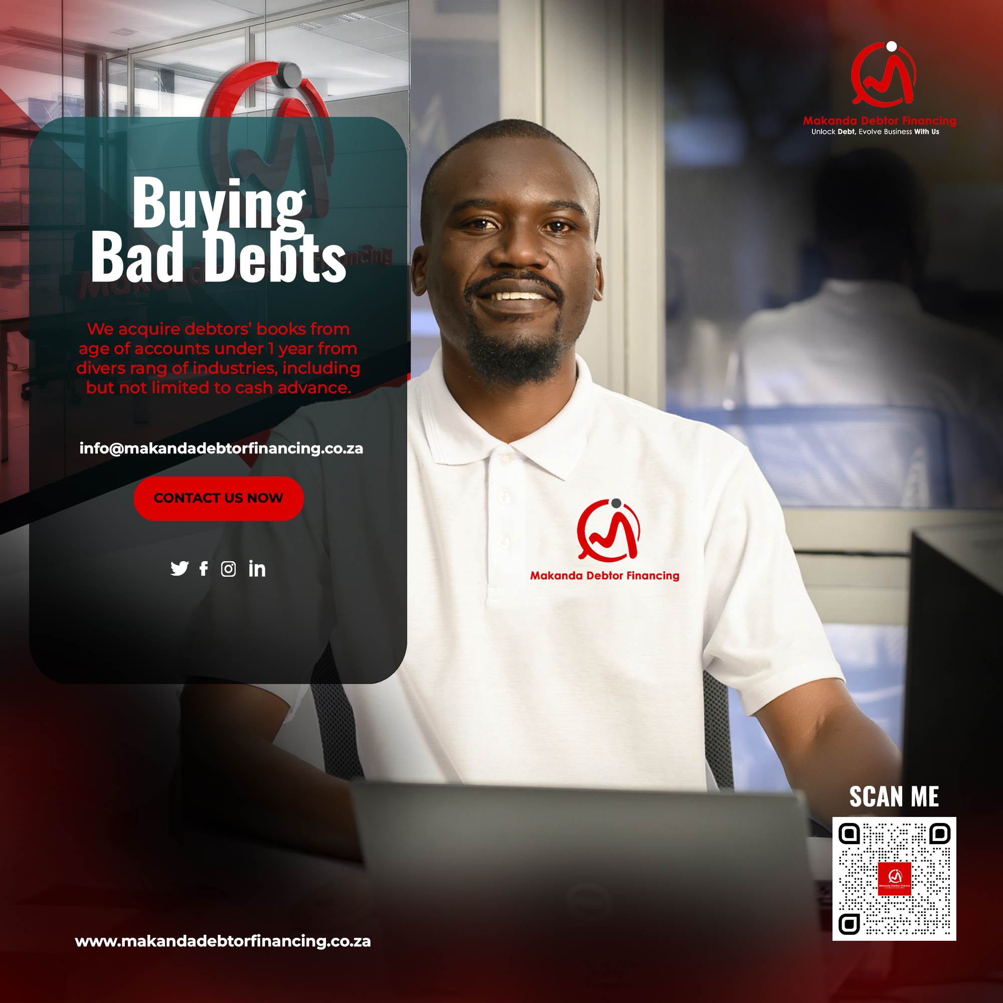 Founded in 2019, our debtor financing is solely inclined towards assisting all kinds of businesses, industries as well as individuals in extinguishing their nonperforming debts and/or debt books. It is for this sole purpose that Makanda Debtor Financing (MDF) proposes to buy bad debt or be a collection agent, with an aim to provide financial rescue to those who want to quickly get paid, improve their revenue, income, cash flow, and reduce the magnitude of bad debts.