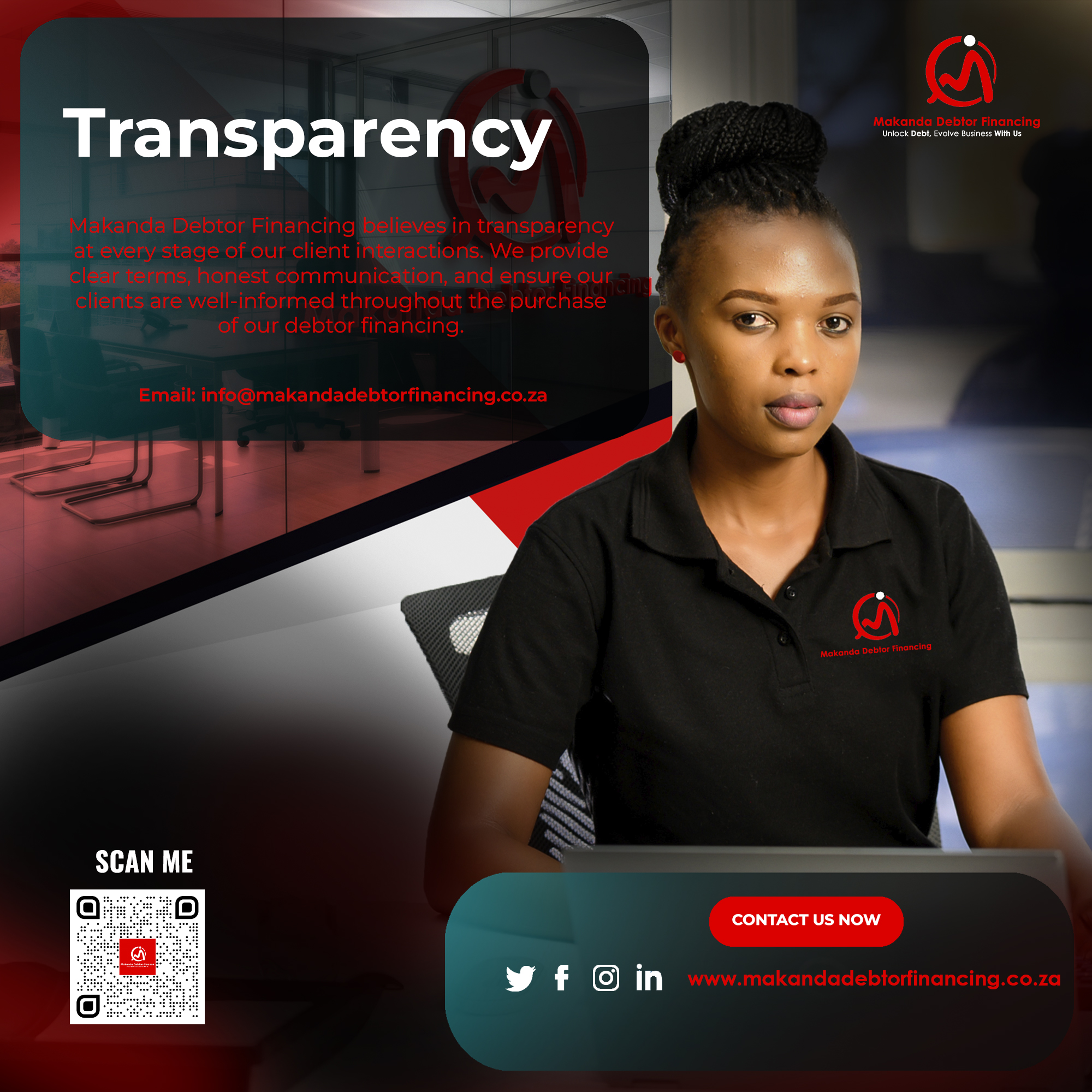 Makanda Debtor Financing believes in transparency at every stage of our client interactions. We provide clear terms, honest communication, and ensure our clients are well-informed throughout the purchase of our debtor financing.